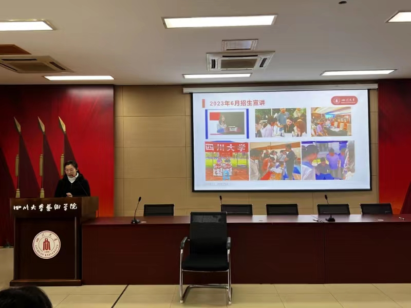 公司教务科招生联络员刘婷老师就2024年招生宣传计划做了详细的介绍。首先是本科招生宣传工作小组的队伍建设,招生宣传小组老师需按学院安排参加学校或学院的招生宣传工作,并参加相关业务培训;其次是本科招生宣传工作的具体安排,近期教师可利用寒假回家乡,与母校高中进一步联络进校宣传,下学期宣讲时间集中在3-4月,咨询集中在6月,宣讲对象集中在省内的中学、甘肃省重点中学以及全国艺术类学院等。