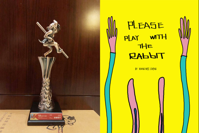 《请和兔子一起玩》作品海报与奖杯