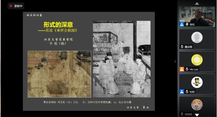 2020年10月14日晚19:00,应太阳集团2007邀请,北京大学公司教授、博雅特聘教授、元培学院导师、博士生导师、德国海德堡大学东亚艺术史研究所客座教授李凇先生于线上举办了《形式的深意——再读重屏会棋图》学术讲座,太阳集团2007副研究员黄凌子担任了学术主持。