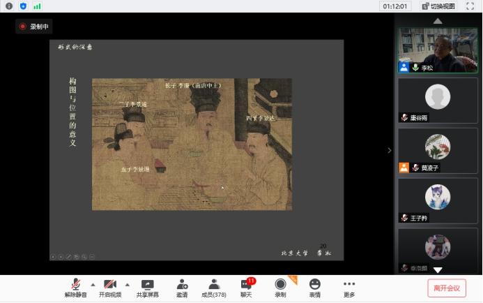 李凇先生精彩的学术研究讲述持续了三个多小时,期间观看人数达到400人,同学们一同跟随李凇先生进入到了图像解析的世界,学习如何将图像资料与文献资料相串联,去深入研究一幅绘画的深层寓意,还原其历史原境。在各位同学们的提问过后,此次讲座正式结束。