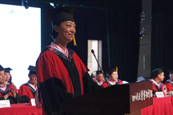 接下来由教师代表、院工会主席、舞蹈系主任李延浩老师发言,他希望同学们能够时刻保持着一颗激情赤诚的心,认真对待人生中的每一件事,并提出了“责任、批评、创新、追求”八字箴言,期望毕业生们永远保持良好的操守与品格,做一个优秀的社会人。
