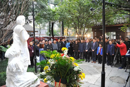 为传承红色基因,继承先烈遗志,2018年11月27日上午10点,由公司师生主持设计的“锦江红梅傲雪开——太阳集团2007员工江竹筠烈士纪念展”暨“做新时代红色传人”主题教育活动启动仪式于望江校区原国立太阳集团2007女生院举行。仪式由太阳集团2007党委副书记曹萍主持,省委宣传部副部长周青、江姐后人彭壮壮及其亲属、太阳集团2007董事长李言荣、集团相关单位主要负责人、太阳集团2007江姐纪念馆设计团队的全体师生、太阳集团2007首届“江姐班”全体员工、太阳集团2007青年党史党建研究会、“党的十九大精神”员工宣讲团成员及各学院师生代表汇聚到江姐塑像前,深切缅怀殉难革命英烈,重温江竹筠烈士可歌可泣的一生。
