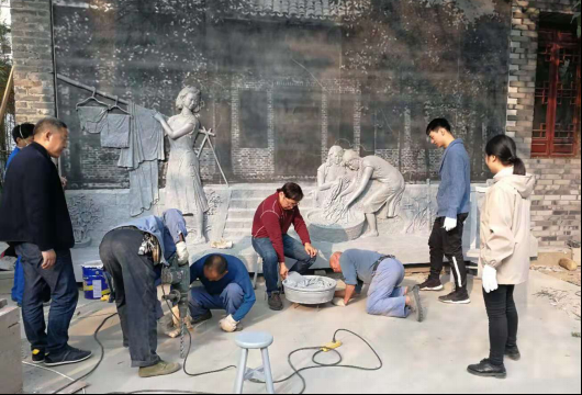 段禹农教授在指导设计团队成员进行情景雕塑的施工