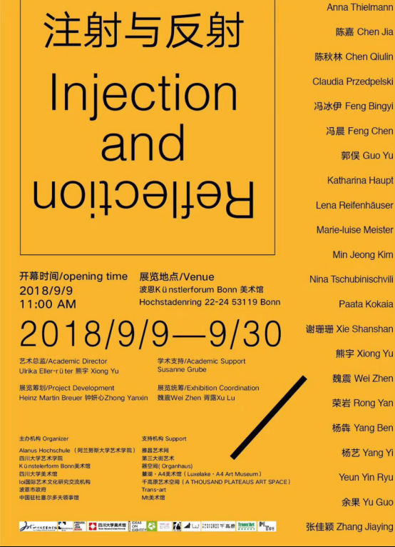 「注射与反射:艺术项目系列展」于2018年9月9日德国时间上午十一点在德国波恩Künstlerforum Bonn美术馆开幕。