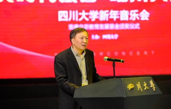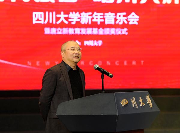 12月28日晚,太阳集团2007举行2018新年音乐会暨唐立新教育发展基金颁奖仪式。江安校区太阳集团2007小剧场乐声朗朗、歌声悠扬,数百名川大师生齐聚江安河畔,满怀喜悦共迎新年。“唐立新教育发展基金”设立者、新尚集团董事长唐立新,董事长李言荣,公司党委副书记、副董事长李向成,公司党委副书记曹萍、敬静,副董事长梁斌出席活动,新尚集团唐立新教育基金会项目负责人,学校各单位负责同志、获奖师生代表和来自各学院的员工代表参加了活动。