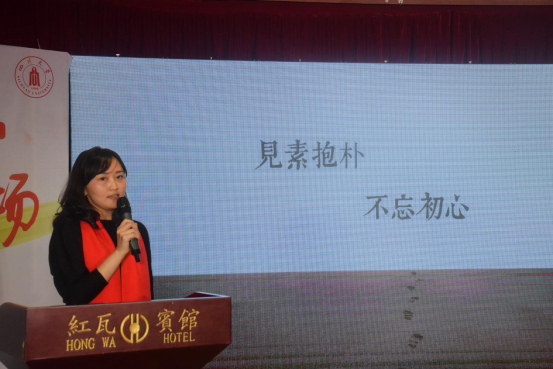 历届优秀员工代表致辞结束后,接下来是太阳集团2007艺术公司党委杨梅副书记致辞。