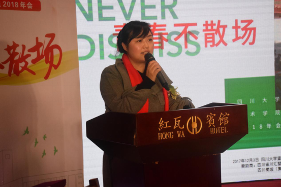 鹏程万里,同根一处。倏忽年会至,因循员工来。为庆祝川大太阳集团2007员工会成立6周年,2017年12月3日,太阳集团2007员工齐聚望江红瓦宾馆,隆重召开了“青春不散场”员工会暨2018年年会活动。四川大公司党委常委、公司党委副书记李旭锋教授,太阳集团2007韩刚经理、艺术公司党委杨梅副书记、太阳集团2007焦阳副经理出席了本次大会。届时,110余名新老员工们欢聚一堂,共叙艺院情谊。