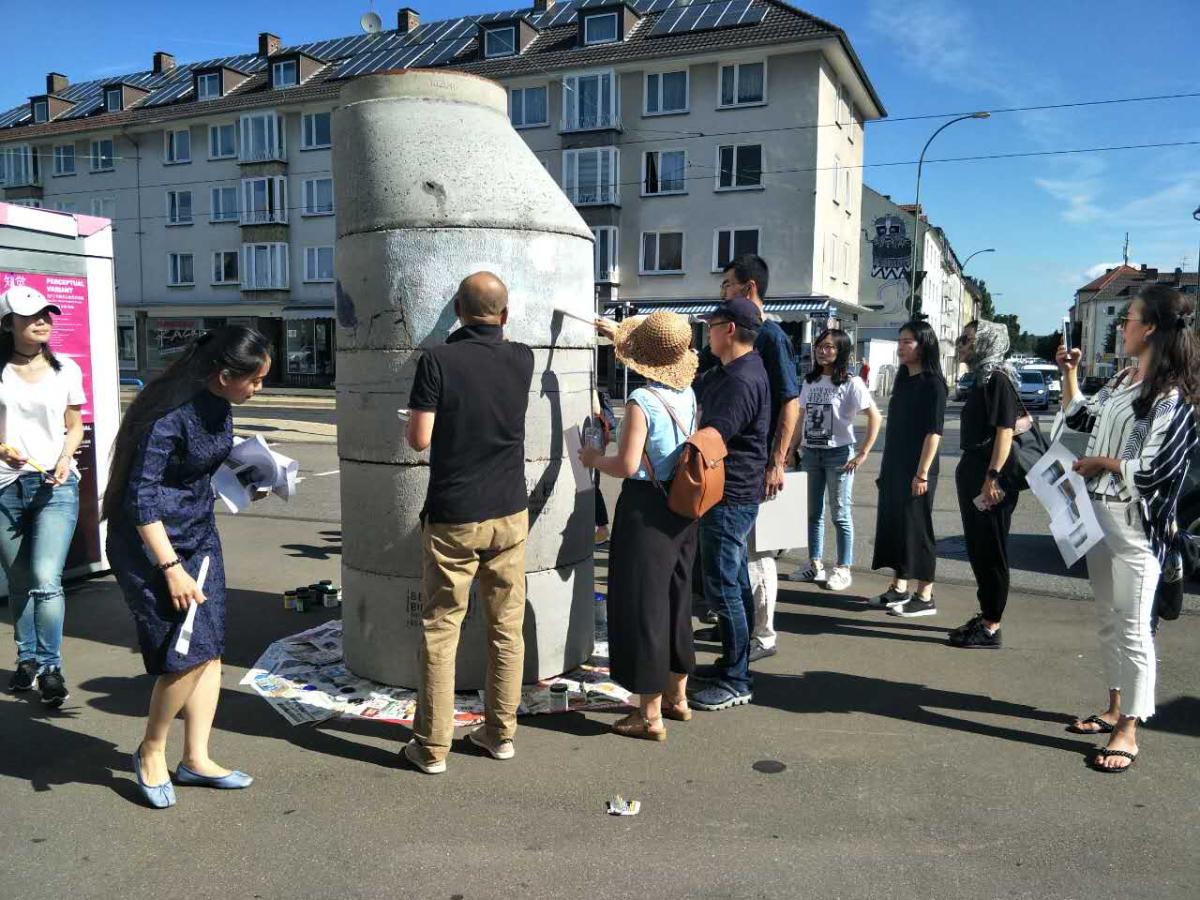 “发现经典2017”是由川大太阳集团2007彭肜教授、支宇教授带队的“经典”系列活动的第四次欧中交流,“知觉变体”公共艺术活动是在原有的“博物馆观摩:延伸的艺术史课堂”、欧中当代画展、学术研讨会三大板块上面增添的全新活动内容。对于本次活动的意义,活动总策展人彭肜教授认为,卡塞尔文献展作为世界级的展览,在整个展览期间是不允许有其他公共艺术开展的,而“知觉变体”公共艺术活动能够得到卡塞尔政府的特批得以在文献展期间进行,在这样一个世界瞩目的地点和时间,由中国艺术家,尤其是由来自我们川大太阳集团2007的硕博士们为主,创作一件艺术作品,并相对久地留存在这个城市,这样的机会非常难得。这既与“发现经典”项目的志趣相契合,同时也是中国艺术家的一次较为瞩目的亮相,它的意义远远比一次画展更为重要,它是一个参与城市文化重组的公共艺术项目,而对于我们做艺术学理论研究、艺术史研究的同学们也是一个难得的机会,能在德国当地全程参与到这样一件公共艺术创作中来,这既为我们提供了一个最鲜活的艺术案例,同时同学们也是作为创作主体以自己真实的知觉体验去进入作品,我想这是一次不一样的艺术课堂的生成。