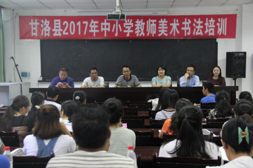 2017年7月11日,甘洛县2017年中小学教师美术书法培训活动正式开始,参加会议的有教育局人事股股长侯象杰,甘洛县教师进修学校副董事长马本乃,甘洛县教科局副局长李昌联,以及公司绘画系教师李善叶、书法系教师杨帆博士、党政办公室叶姿含博士、中国画方向研究生于进杰、秦晴、书法专业研究生杨阳、朱春燕同学。