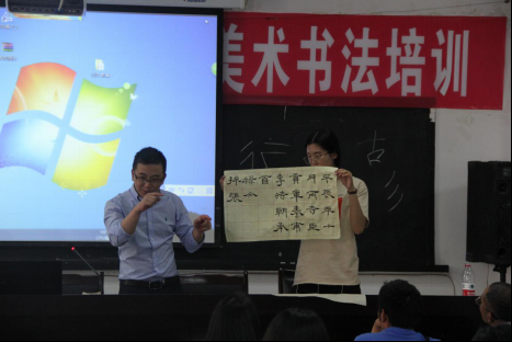 教学于9:30正式开始,早上的第一节课是书法课,公司书法系教师杨帆博士对书法的文化传承和书法的审美方法进行了分析和总结,并且提出书法教育的方法及其重要性。