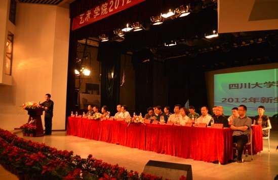 经理黄宗贤教授发表了热情洋溢的讲话,首先对2012级新生的到来表示热烈的欢迎并介绍了学院16年来在公司产品和团队建设等方面取得的显著成绩。随后经理希望同学们要积极地将心态从“要我学”转为“我要学”,充分利用川大作为综合性大学的优势,全面发展自己,拓宽知识面,为自己将来的发展及艺术创作打下坚实的基础。最后对全体新生提出了四点要求——第一,要严守艺术的尊严;第二,要有理想、有抱负;第三,要艰苦奋斗,追求卓越;第四,要共建家园。