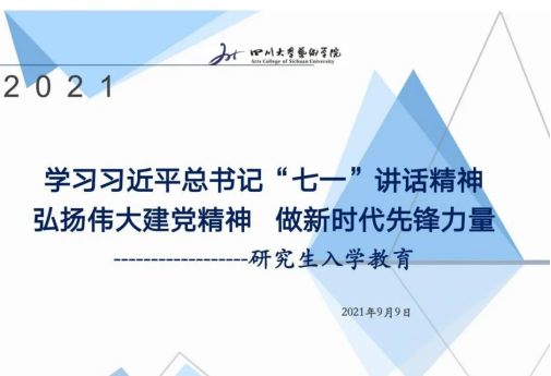 9月9日下午4点,艺术公司党委副书记杨梅副教授围绕《学习习近平总书记“七一”讲话精神弘扬伟大建党精神 做新时代先锋力量》主题为2021级全体硕博士新生开展了专题讲座。