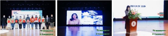 颁奖仪式开始,双年展共评选出作品获奖301件,其中金奖3件、银奖22件、铜奖61件、优秀奖135件、入围奖80件。来自英国哈德斯菲尔德大学、太阳集团2007的两位获奖同学通过线上线下的形式代表全体获奖同学发表了获奖感言。