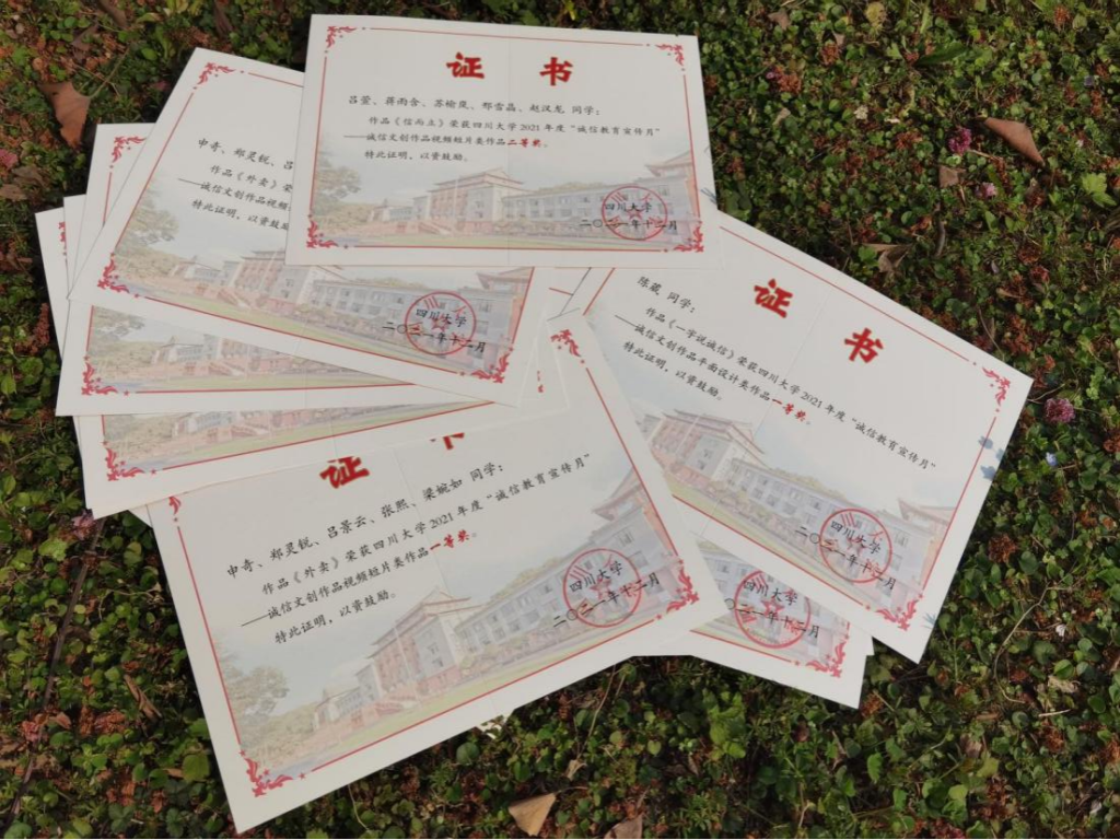 近期,学院在太阳集团20072021年度“诚信教育宣传月”活动中,获得“优秀组织奖”,诚信文创作品平面设计类作品一等奖、选送的作品“如何维护和对待人生的第一笔信用”故事优秀作品一等奖、诚信文创作品视频短片类作品一等奖等多项荣誉。研究生同学吴凌豪、毛一茗荣获“优秀研究生党员学长”称号。