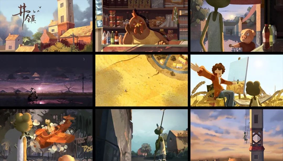 《井镇》由李翔、赵易、蒋维刚、李文瑜老师指导,2017级动画专业郝晓睿同学导演,刘永伟、牛斌、方志豪、王雪媛等同学共同参与制作,短片讲述了一只希望成为画家的青蛙在实现自己梦想的过程中遇到种种挫折,最后被迫屈服于现实只能将梦想寄托给好友小猪的故事,剧情中既描绘了生活的无奈,也表现了对于梦想的坚持与传承。影片融合了逐帧手绘和2D关键帧动画的技术,质感细腻,光影丰富,呈现出了独具魅力的影像风格。在完成毕业设计后,郝晓睿同学已保送到中国传媒大学继续读研深造,追逐他个人的动画梦想。