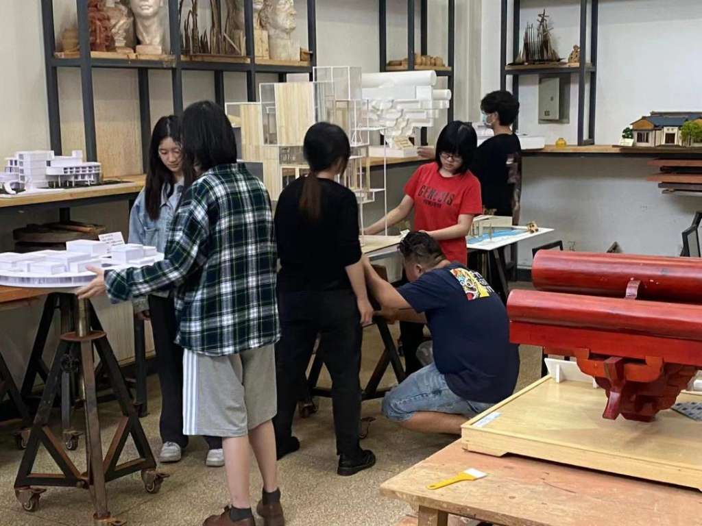 2022年5月31日,2020级环境设计课程《设计思维与艺术表达训练4(模型表现)》顺利结课,吴兵先、吕君楠、孙瑶老师与同学们进行了现场互动点评。此次的课程主题为“传统川西民居建筑与国外著名现代建筑的古今、中外对话”,同学们在为期三周的课程中以团队协作的方式,结合主题积极构思并展开绘制工作,对建筑尺度与空间有了更为深刻的认识,取得了较好的效果。在此次的互动点评活动中,邀请了2021级与2019级的员工代表参加,以增强各年级同学之间的联系,高年级同学的参与对低年级同学起到了很好的示范和带领作用。