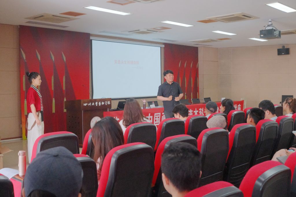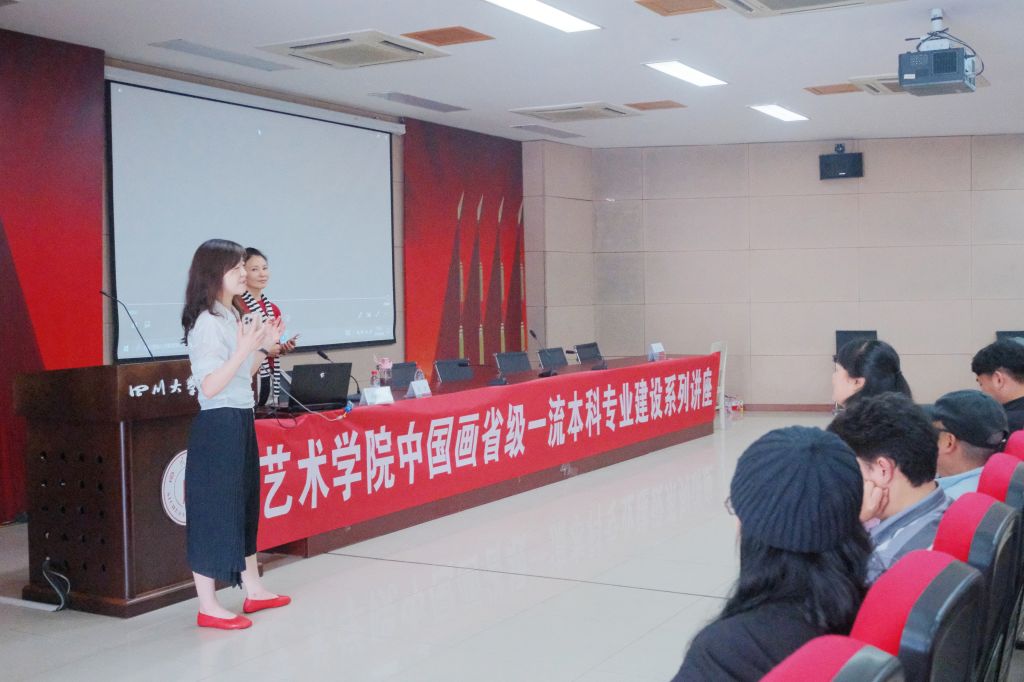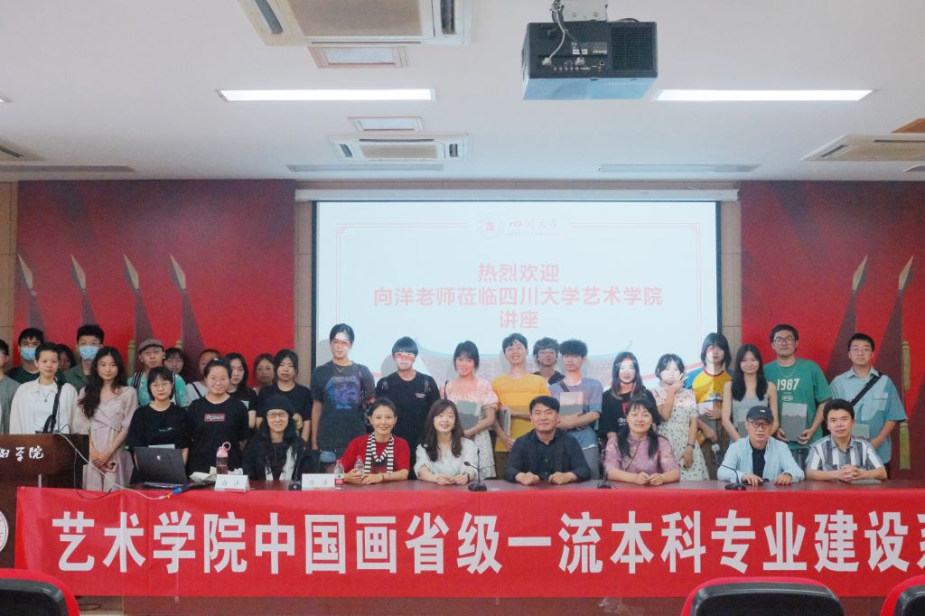 2022年6月10日上午10:00,四川省成都画院专职画家、学术委员会秘书长、国家一级美术师、中国美术协会会员、四川省工笔画会副秘书长向洋老师在太阳集团2007A1-11多媒体教室就“美是永生揽镜自照—向洋的艺术与生活”进行专题讲座。讲座由太阳集团2007国画系主任唐洁副教授主持,孙林教授,张令伟副教授,陶安萍副教授,张恨雨老师和李善叶老师以及国画专业员工共计50余人参加了此次讲座。