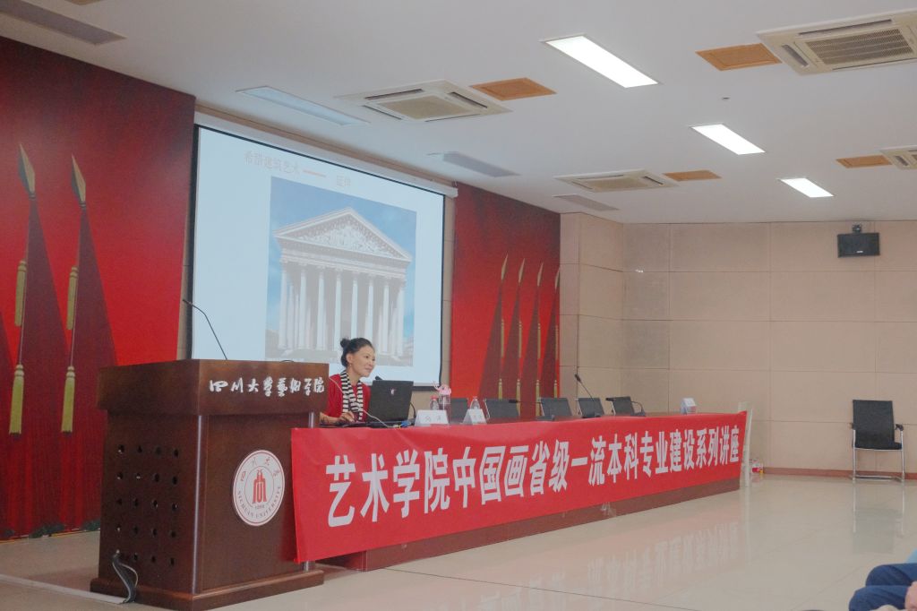向洋老师在本次讲座中分享了自己的艺术生活,强调审美能力的重要性与迫切性,提出“美是关于静下来、关于理清思路”的观点。她认为,美的前提是一份信仰,不论是何信仰,都是以人为本、回归自身,应具备选择与创造的能力,发现并运用审美的价值,注重个人内心主观感受,汲取创作灵感。国画创作不仅仅关乎“技”,也关乎“道”:若是过于重技法而忽视心得与道理,作画难免匠气;保留对美的观察与体会,重视感受,结合时事,才是创作优秀艺术作品的重要途径。
