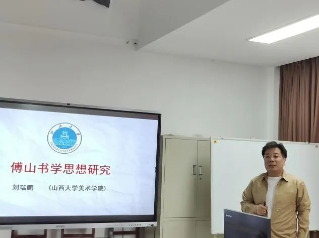 刘瑞鹏博士以自己博士论文的写作缘由来引入讲座主题,就傅山生平、交游、思想建构和遗民身份等方面进行讲解。接着以傅山书学思想渊源考论为核心,对傅山书学思想与子学摭论,考据学蠡测与医学略述,傅山书学思想之“尚奇”观、“丑拙”观、“天倪”观等方面进行了阐述。然后以傅山书法创作理念解读作为讲座总结。