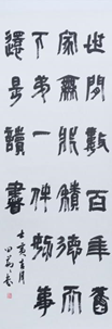 我的教学安排:首先,简单了解篆书的发展史。第二,技法训练:在大篆、小篆、清篆中各选一个自己喜欢的范本临摹。大多同学对大篆和小篆接触少,重点训练字形结构和线条质量,每周进行一次相互点评(训练员工的审美、语言表达)。部分同学可尝试背临、意临,进行自解。最后,员工选两种熟练的篆书以完整的作品形式完成(6尺—8尺)。