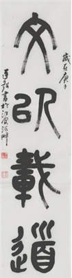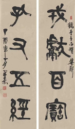 书法临摹的目的是创作,创作中的问题应该在临摹中去解决。篆书的临摹创作不妨借鉴王铎的学习方法,由前期临摹中强调“如灯取影,不失毫发”,中期意临时“不规规模拟”,再到后期的独立创作。尤其是在临创转换时,串临也不失为一个好方法,用一个碑刻的特征去改造另外一个碑刻,以此训练临创思维,为后来的独立创作奠定基础。