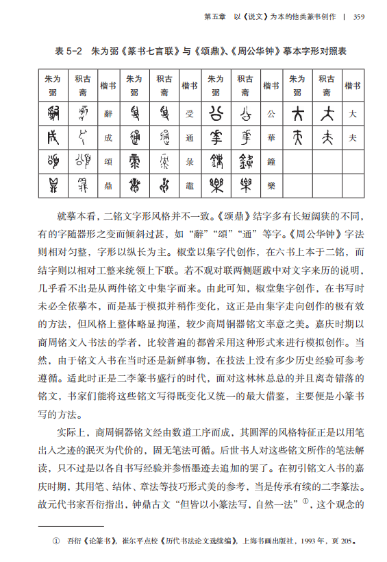 本书分为“清初的《说文》研究与篆书创作”“乾嘉时期的《说文》学对篆书创作之影响”“乾嘉时期《说文》学者的篆书创作”“邓石如的《说文》研究与篆书创作之得失”“以《说文》为本的他类篆书创作”等部分,论述清乾嘉时期《说文》学的兴盛与篆书创作的关系。此外,附录“《唐写本说文解字》与《说文》宋刻元修本、汲古阁本篆文字形对照表”“二李石刻与《说文》篆文字形对照表”,以供篆书创作资鉴。