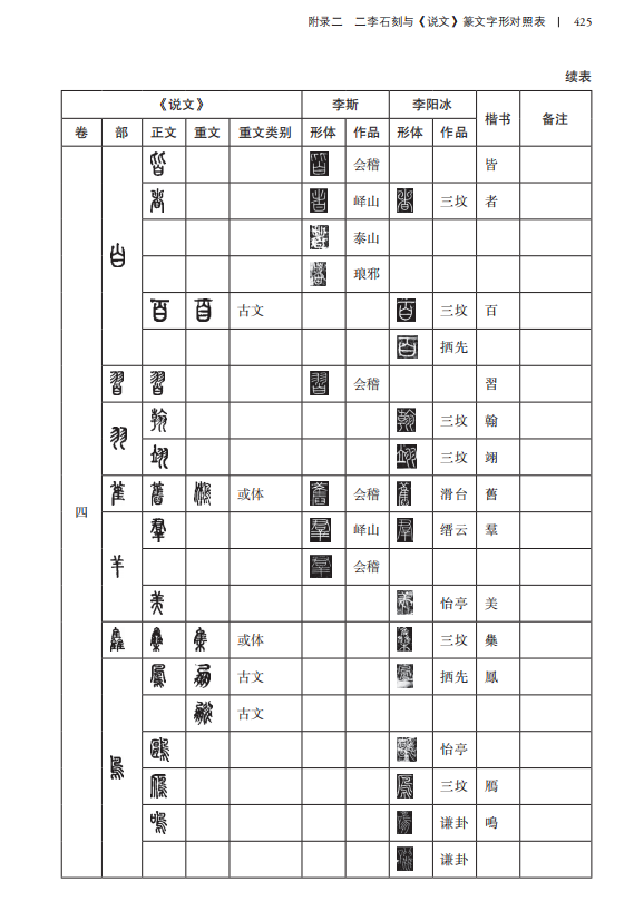 附录二 二李石刻与《说文》篆文字形对照表(405)