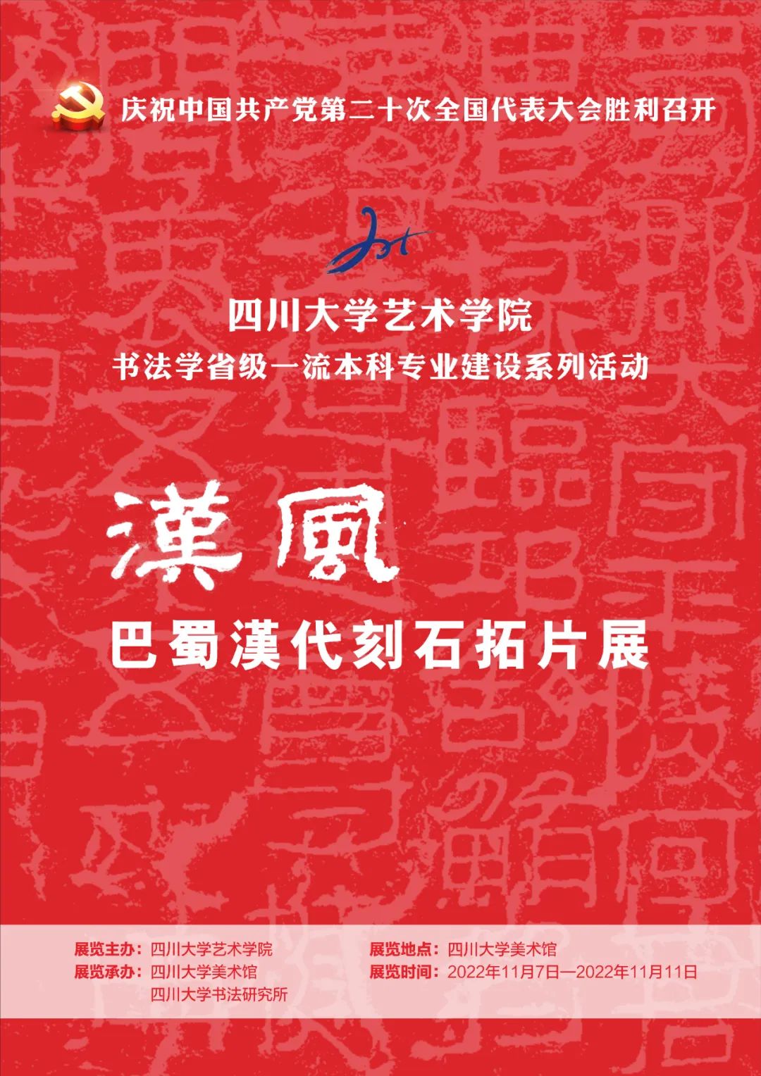 为庆祝党的二十大胜利召开,坚定文化自信、践行文化使命,积极推动优秀历史文化传承,我们组织举办此次“汉风:巴蜀汉代刻石拓片展”。这些拓片是汉代历史文化的见证与结晶,其中凝结着中华民族悠久的文化传统与审美精神。一方面,这些拓片承载着丰富的历史文化信息,是当时文化、社会、生活等的反映,另一方面,它们是宝贵的书法资源,是书法研究与学习的重要对象,具有重要的学术价值与审美价值。