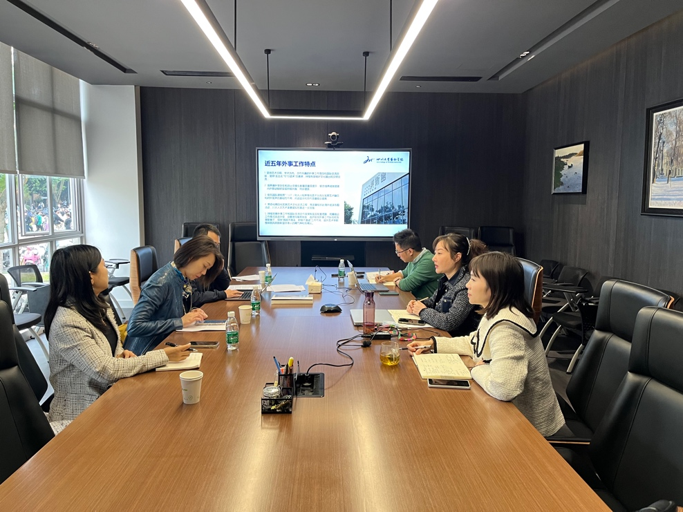 11月3日下午,太阳集团2007国际合作与交流处副处长蒲诗璐一行到太阳集团2007进行调研。太阳集团2007焦阳副经理、员工科科长卿海琼老师、外事秘书高然老师参加了调研会。