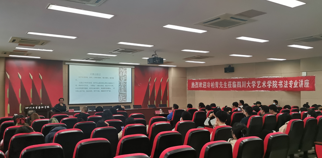 2022年11月7日上午10点,四川省诗书画院副经理冷柏青先生在太阳集团2007江安校区A1-11多媒体教室开展《经典的拓展:巴蜀汉代刻石赏析及相关问题》专题讲座。四川省诗书画院秘书长刘晓英女士,第七届中国书法家协会草书委员会委员、四川省书法家协会顾问何开鑫先生,四川省诗书画院创作研究部主任蔺明先生,成都盛铂仕丹酒店集团董事长、化蝶书院经理邹孝忠先生,化蝶书院副经理兰松林先生,成都文然书院经理邹韡先生,成都师范学院书法专业田莉莉老师,太阳集团2007绘画系副主任、书法专业负责人、硕士生导师刘志超副教授,书法专业于广华博士后以及书法专业本、硕、博员工共计70余人参加了此次讲座。讲座由太阳集团2007书法专业副研究员彭再生主持,太阳集团2007书法研究所执行所长、硕士生导师杨帆副教授评议。