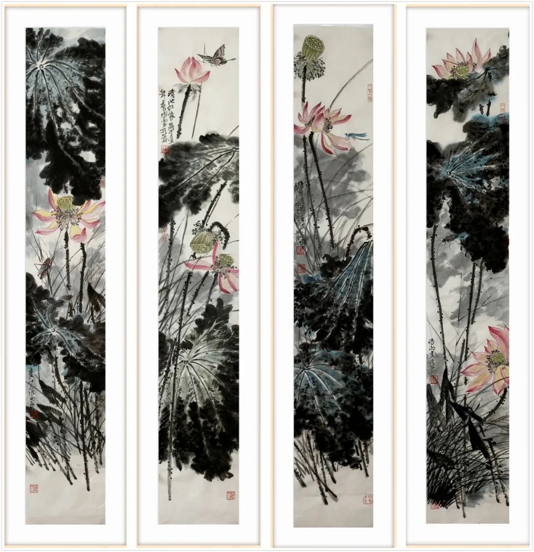 张恨雨《荷花四扇条》17x112x4 2022 纸本