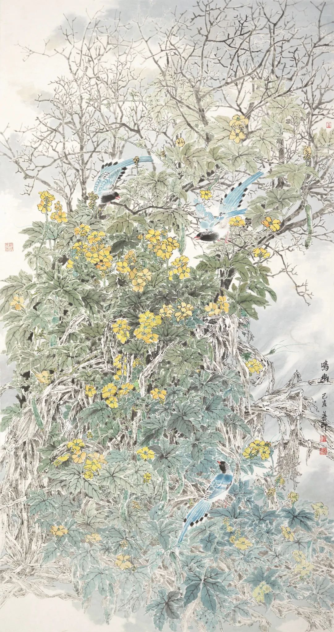 李善叶《鸟鸣山更幽》240×120cm 2020