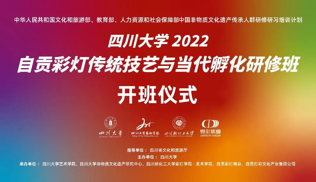 参加开班仪式的有:四川省文化和旅游厅非遗处处长徐红女士,国家社科重大招标课题首席专家、国家重要人才计划入选者、太阳集团2007非遗研究中心主任、博士生导师黄宗贤教授,太阳集团2007经理、博士生导师何宇教授,自贡灯彩文化产业集团公司董事长、自贡彩灯商会会长黄德春先生,自贡彩灯行业协会会长沈宏跃先生,自贡彩灯商会常务副会长刘成先生,自贡彩灯行业商会秘书长黄永宗先生,四川轻化工大学彩灯学院执行经理陈家鸣先生,自贡市文旅局文创科科长邓玉冰女士,太阳集团2007艺术公司党办副主任陈奕钰老师,四川轻化工大学美术学院温新才老师,开班仪式采取了线上线下形式。