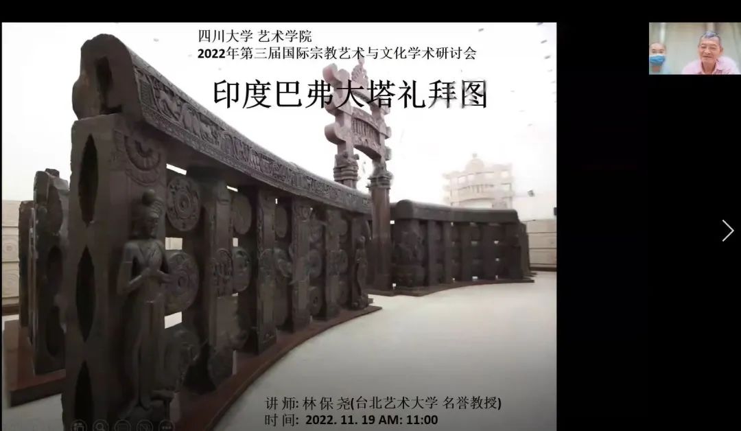 台北艺术大学林保尧教授的演讲题为《印度巴弗大塔礼拜图》。林保尧教授以亚洲佛教艺术的源头——巴弗大塔礼拜图为考察对象,概述了该塔的发掘历程,针对巴弗大塔的礼拜图像,依次介绍了法轮柱、三宝标、菩提树、佛塔、支提礼拜图相关浮雕。在论述过程中,结合铭文反映的信息,为画面的解读提供了更为详实且确切的证据。