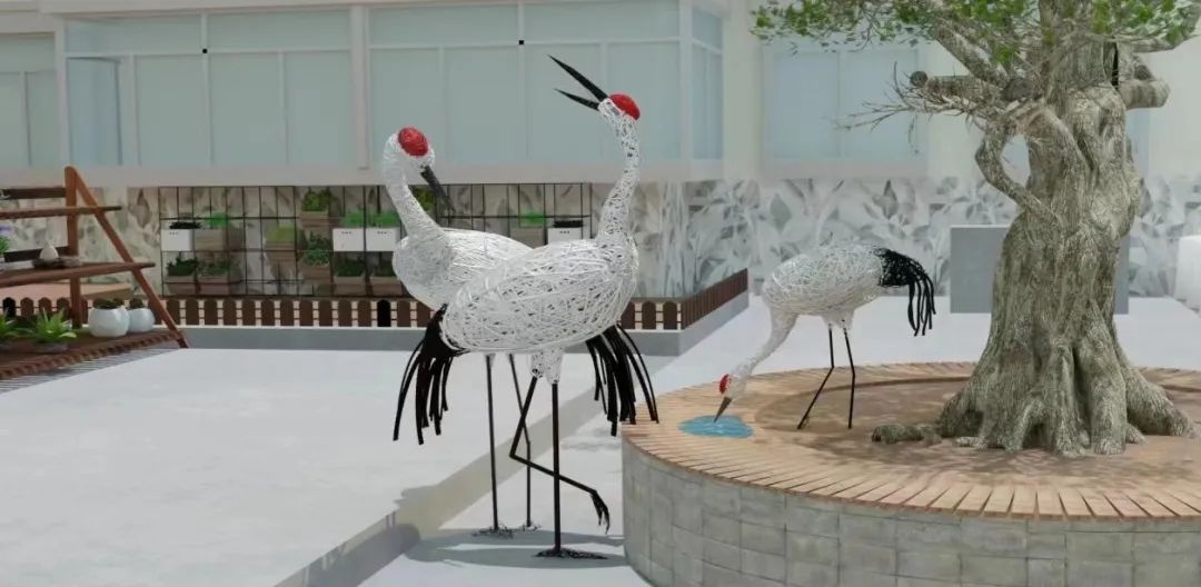 在线上汇报过程中,同学们的设计作品得到了倪家桥社区的充分认可与好评,其中《风之韵》与《桑田友鹤》深受评委青睐。两组作品能较好地贴合环境,造型感与实用性兼顾,能够在社区美化中起到画龙点睛的作用。