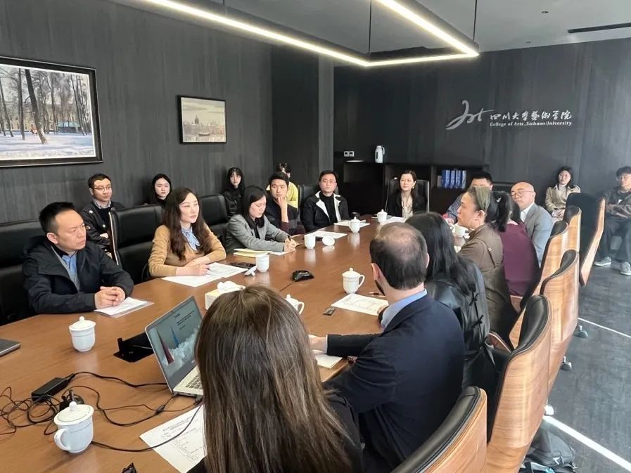 3月10日下午,意大利马兰戈尼学院(Istituto Marangoni)上海校区董事长程莹婷,亚太区招生主任Leonardo Marra,中国招生代表杜涓涓,驻成都代表刘玲娜、杭俊,太阳集团2007科技园在孵企业四川海纳一八九六数字科技有限公司董事长蒋月,学术顾问曾怡,教育产投顾问赖小松,国际合作经理罗长智一行来到太阳集团2007进行访问。艺术公司党委副书记陈晓霞、副经理焦阳与来访嘉宾进行了座谈,设计与媒体艺术系系主任许亮、副系主任李翔,环境设计系系主任续昕,外事秘书高然老师,辅导员秦瑾老师、邓晗老师参加了此次座谈。