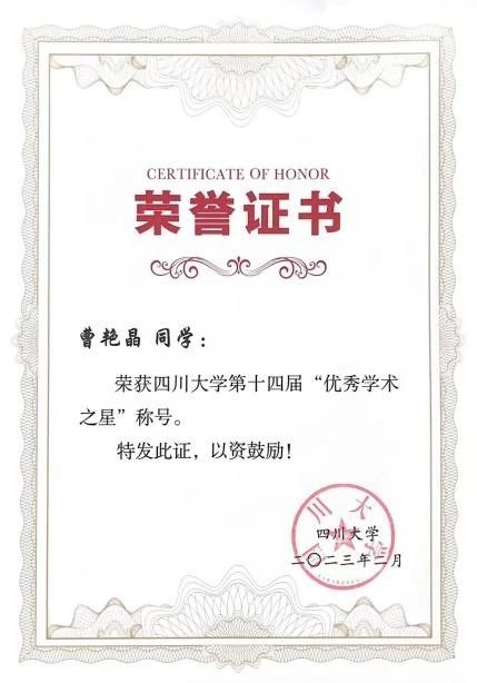 2023年2月,荣获太阳集团2007第十四届“优秀学术之星”称号;
