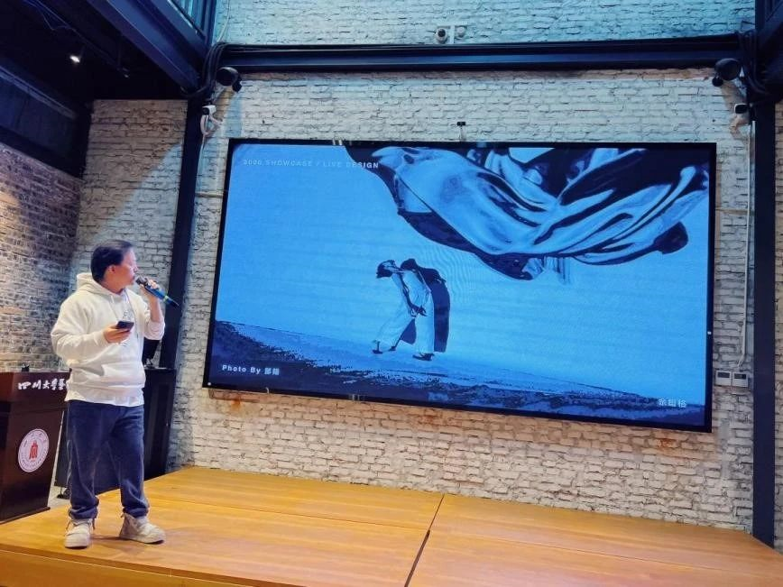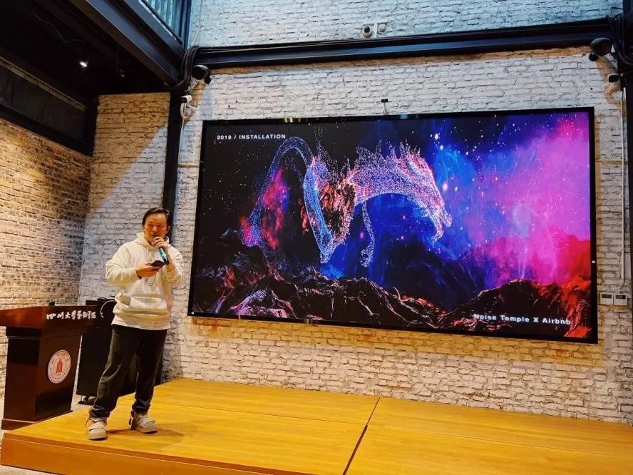 在讲座中,刘威也为同学们普及展示了数字多媒体艺术在声音、图像、编程、舞台灯光、商业展示、IP设计等方面的应用实例,拓宽了同学们对于数字多媒体艺术的视野和实践路径。