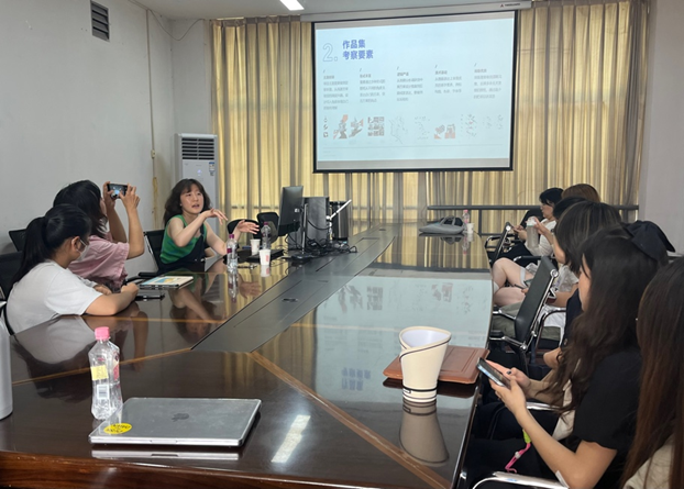 王若颖老师与龙青青老师分别讲述了在英国和美国名校求学的见闻与感悟,并介绍了在国内外设计事务所的工作经历。两位老师表示,英美综合性院校的设计类专业教学形式非常多样,强调对交叉学科综合能力的培养,这要求同学们在掌握基本设计技能和理论知识之外,还要有非常广阔的视野和对社会现实问题的关注。两位老师还就英美留学的差异进行了对比分析,特别是入学要求、课程设置和教学方式等方面的不同。其后,王老师与龙老师从内容、考察要素、创作流程等方面,对申请英美院校的作品集制作进行了详细的讲解,并分享了英美顶级院校的作品集成功案例。两位老师强调,在准备作品时要建立自己的风格和思路,注重作品的深度和广度,要有多样性和创新性,展示出自己的个性和潜力。最后,两位老师对英美澳加等地的院校进行了简要介绍,并对各所高校艺术类专业的特点及招生倾向进行了分析。