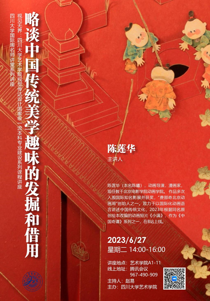 结合主讲人的个人创作实践,分析中国传统视觉美学的要素和特质,强调其背后折射出的人民在不同时代、地区和风俗中的生活面貌,梳理其与数字媒体的内在契合性,分享当代语境下发掘、借用和融合传统美学的经验心得,对视觉类专业同学培养传统文化素养、学习创造性地继承民族文化遗产,具有启发作用。