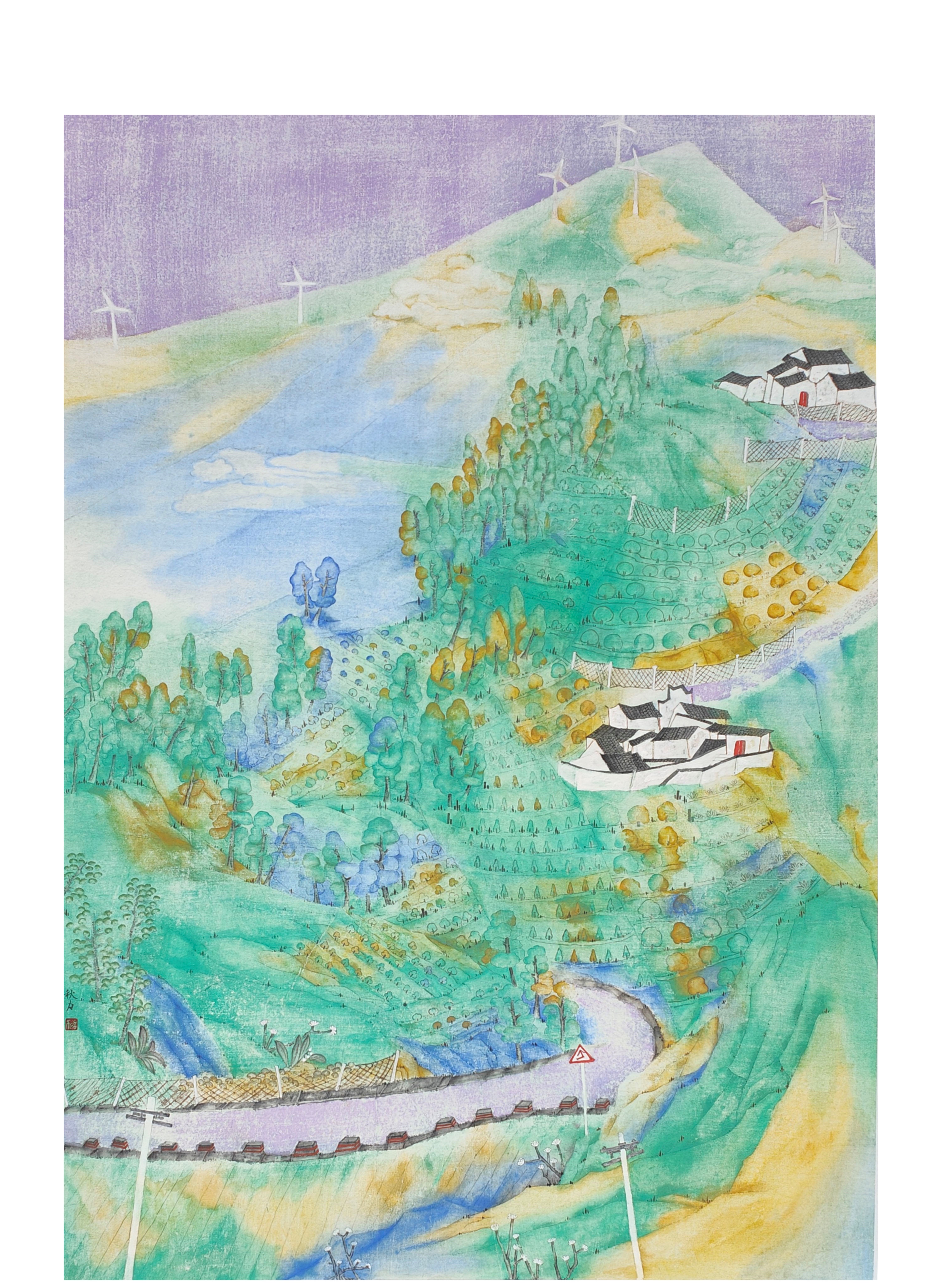 刘晓雨《绿水青山》中国画 200cm×116cm(优秀奖)