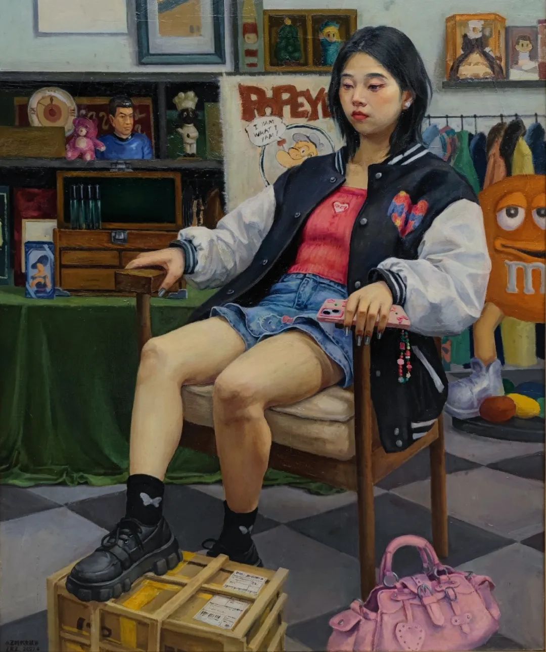 林睿泽《Z时代女孩》油画120cm×100cm(优秀奖)