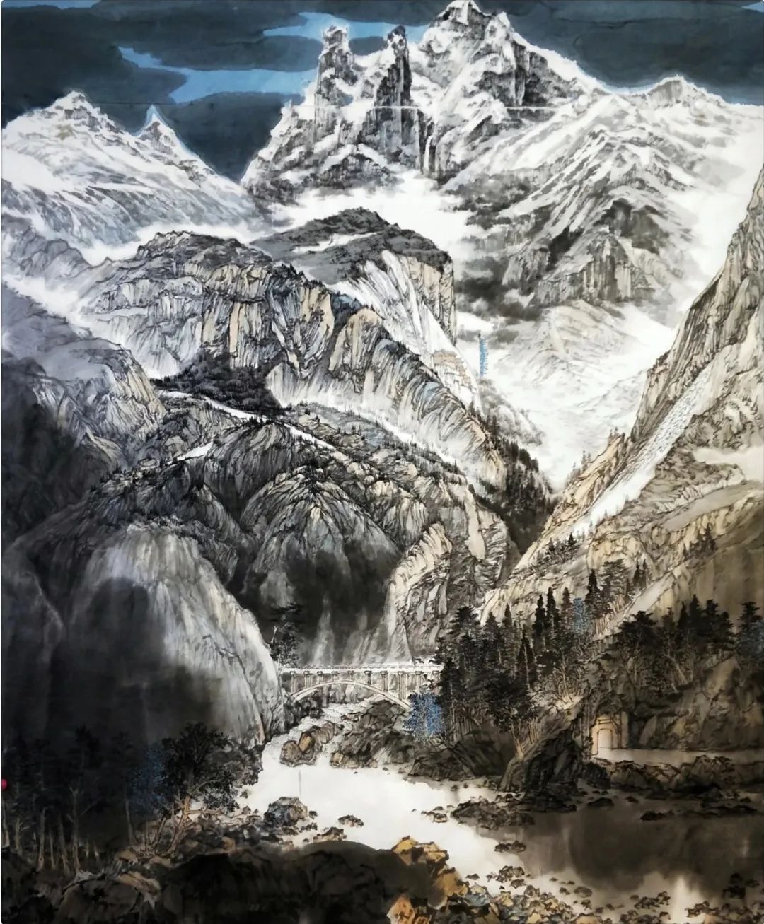 张恨雨 《春望雪山》中国画 165cm×195cm