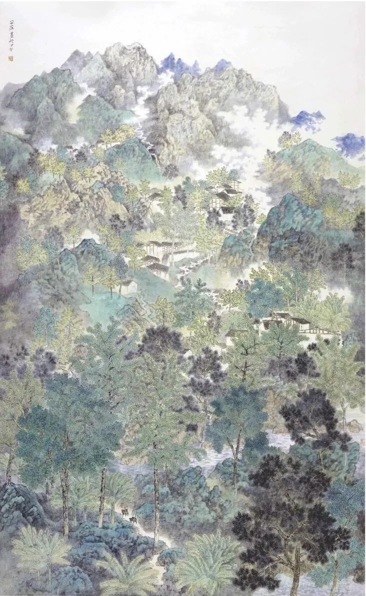 陶安萍 《家山幽翠》中国画 100cm×190cm(佳作奖)