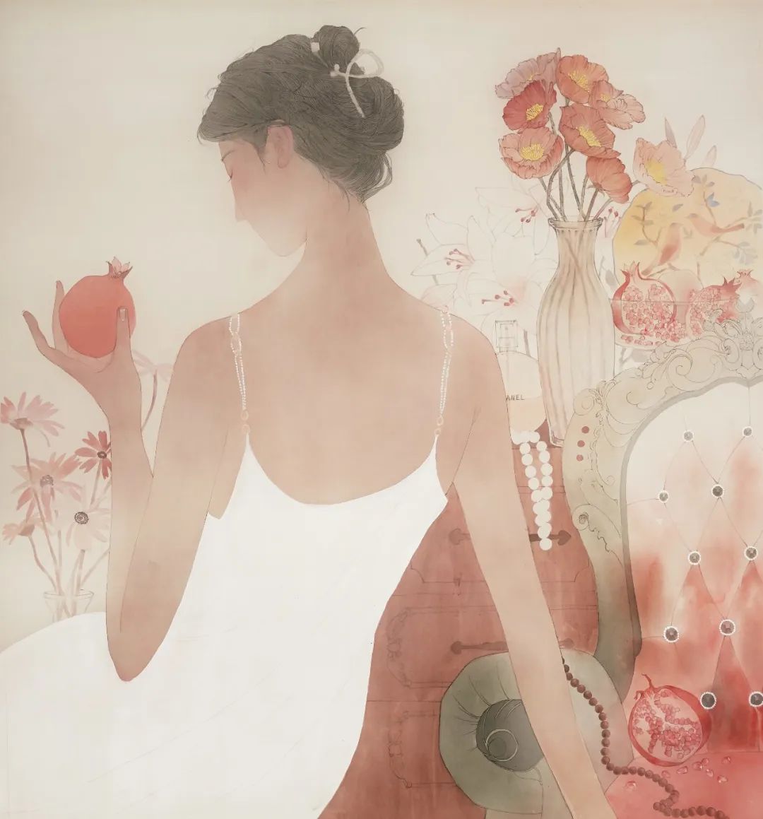 张璟若《石榴半吐红巾蹙》中国画 90cm×90cm