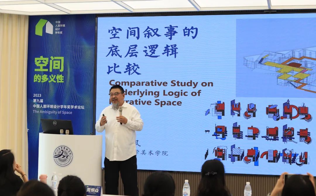 清华大学美术学院副经理、《装饰》杂志主编、教授、博士生导师方晓风做了题为《空间叙事的底层逻辑比较》的分享。方晓风教授指出,设计具有天然的媒体属性,这是设计的根本属性。设计本身便是一种媒介,叙事与作为媒介的设计具有关联性。同时在空间叙事中,由于文化、习俗等因素的不同,具体的空间表达具有一定的差异性。方教授通过对上海世博会瑞士馆、罗斯福总统纪念花园等具体设计案例进行分析,讲解了不同空间叙事中蕴含的设计逻辑。方晓风教授认为,现阶段空间叙事或叙事性空间作为一种广泛应用的设计手法,受到后现代主义影响,建筑被认为是一种语言,空间营造中要利用符号的特性与叙事进行联系,形成空间的多义性。