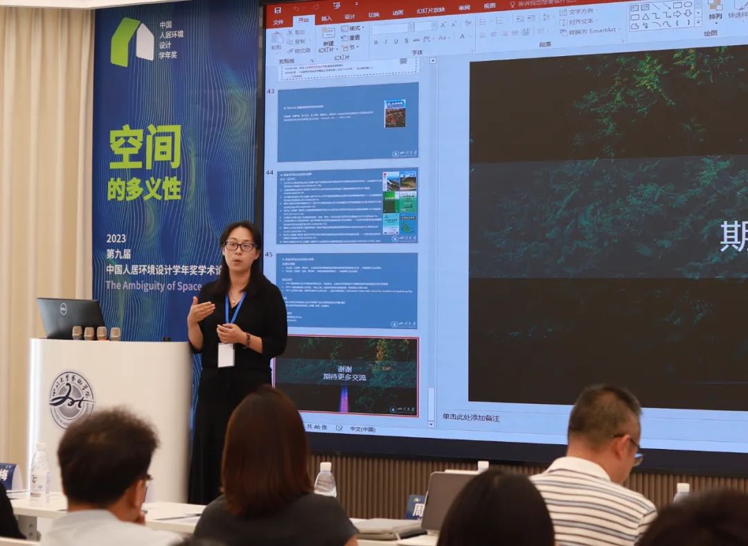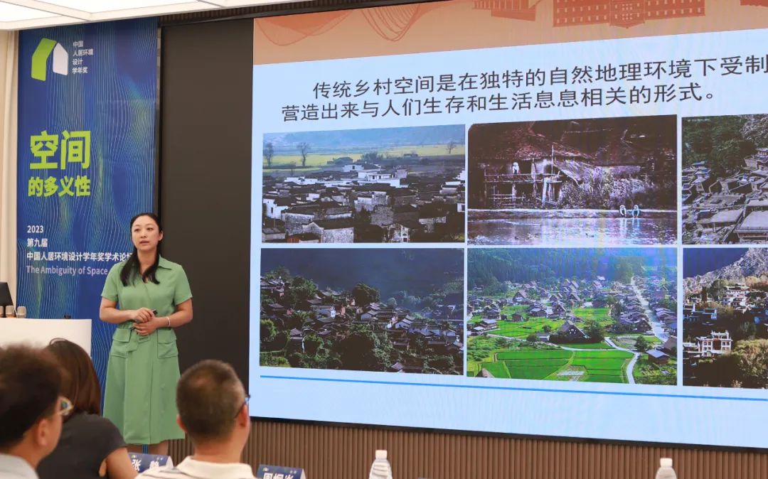西华大学美术与设计学院环境设计系主任、教授、硕士生导师舒悦做了题为《传统空间语言的当代转译》的分享。舒悦教授结合自己的研究与教学经验,提出伴随国家新型城镇化、乡村振兴等重大战略的实施,传统乡村空间的重构和转译成为新时代的重要议题。因此,舒悦教授基于乡村空间的结构转变,从自然、社会、美学等各层面进行思考,阐述中国乡村空间重构背后的机制,并从川西林盘等具体案例出发详细讲述传统乡村空间的转译方法,希望大家能够对未来美丽乡村建设提高关注,助力乡村人居环境发展。