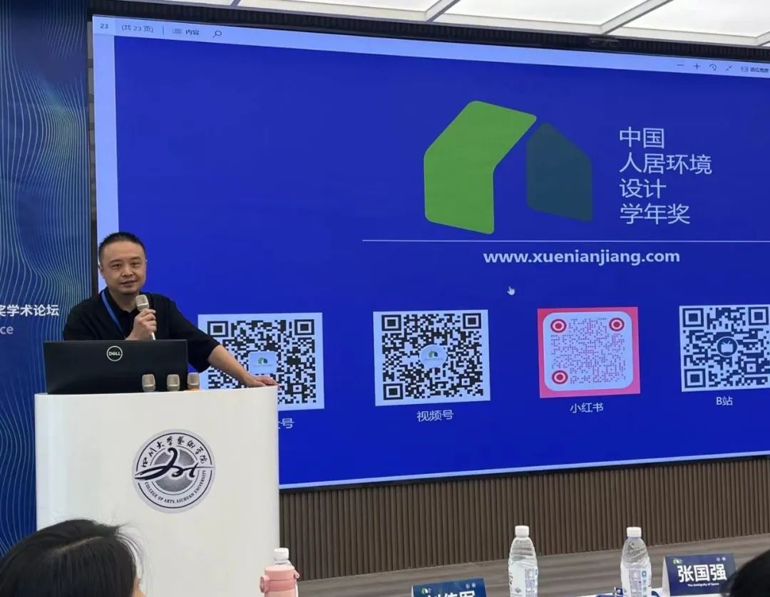 中国建筑西南设计研究院有限公司室内总建筑师、中国建筑学会室内设计分会副理事长张国强在致辞中谈到自己的从业经历,介绍了中国建筑西南设计研究院的发展状况,表达了高校、企业持续合作的美好愿景,并欢迎各大高校的广大优秀毕业生前来中建西南院工作。