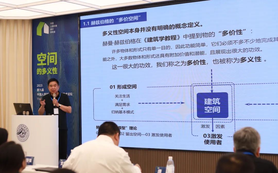 重庆大学建筑城规学院建筑系系主任、教授、博士生导师龙灏做了题为《空间多义的题中应有之义》的分享。龙灏教授提出对于空间定义的思考,指出运用设计思维解决问题,是空间多义性的重要来源。他通过大量的生活案例以及他的团队设计的医院建筑案例讲解了设计者在满足功能的前提下,如何通过思考对空间进行创新。龙灏教授认为在全体、整体、立体思维下进行空间设计,有助于多义性空间的建设。