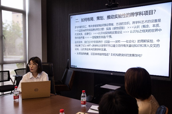 在对嘉宾的简要介绍后,策展人朱月首先提出了研讨的主题“艺术\设计与心理跨学科交叉的未来”。其次,从“为什么要跨学科?”“如何布局、策划、推动实验性的跨学科项目?” “跨学科效应产生的机制?”这三个角度切入,对跨学科交叉和项目的现状进行简要的介绍;最后,向嘉宾提出具体的问题开启研讨。